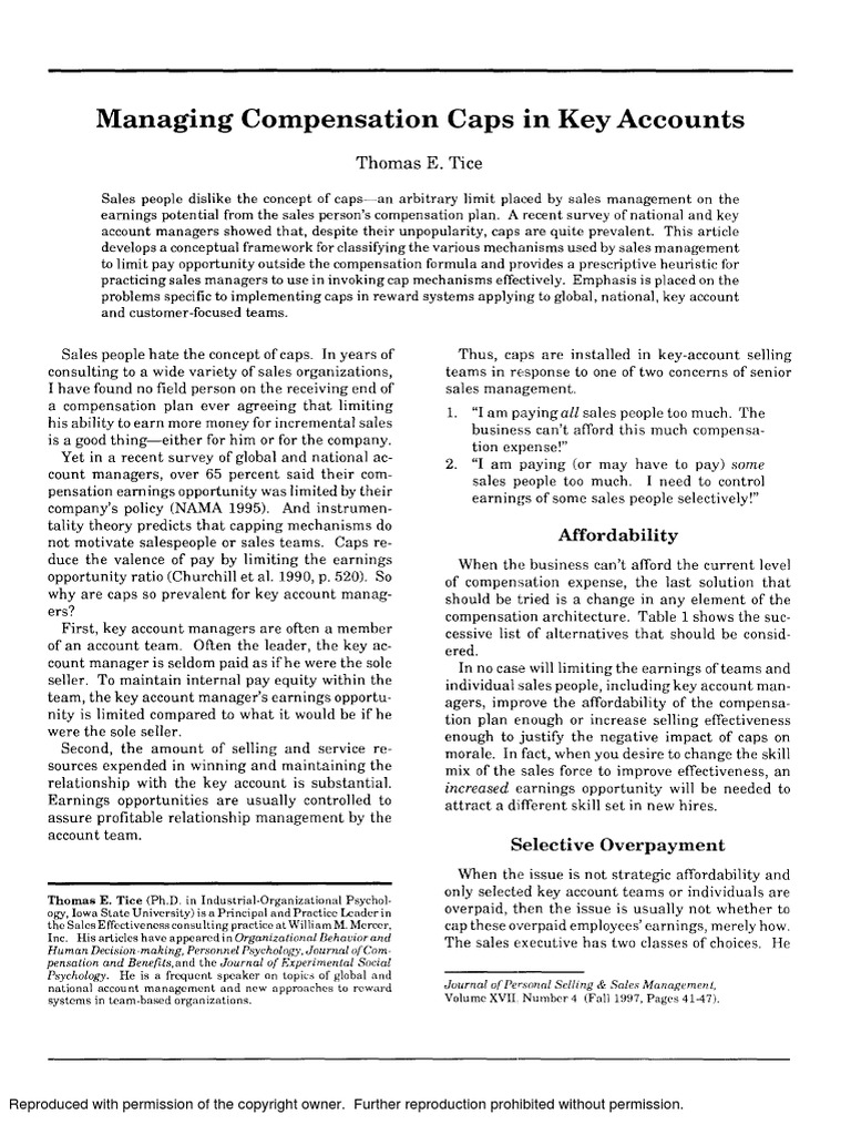 Managing compensation caps in key account managers PDF